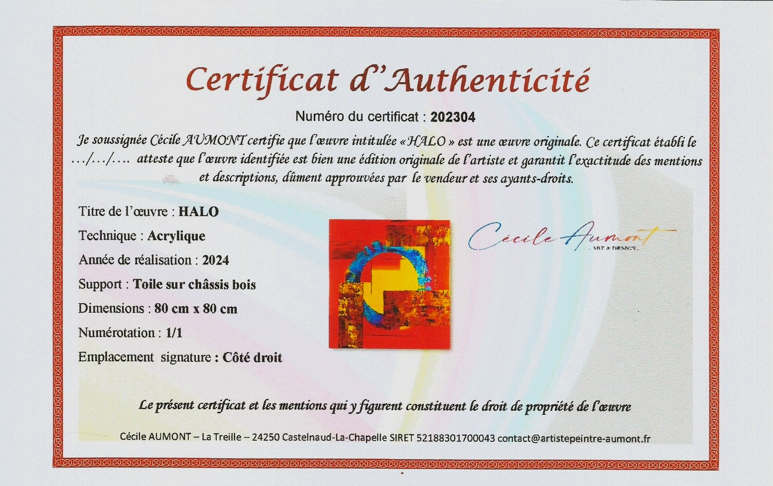 Le certificat d’authenticité est remis avec chaque œuvre